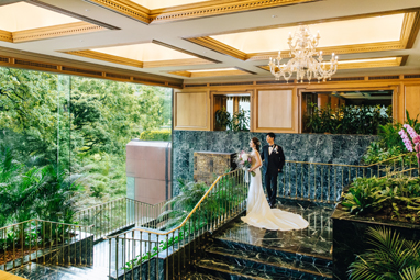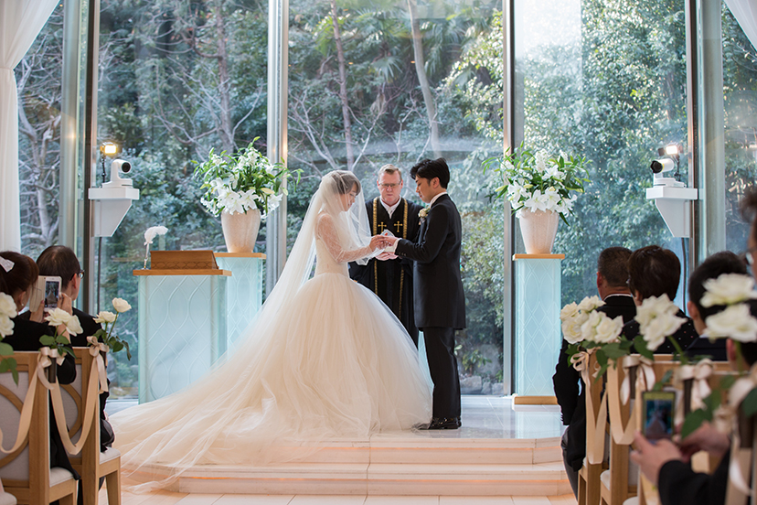 人生で一番輝く舞台にこのホテルを選んだ。花嫁なら誰もが憧れるヴェラ・ウォンのバレリーナに袖を通し、春の温かな陽光が降り注ぐチャペルで挙式。