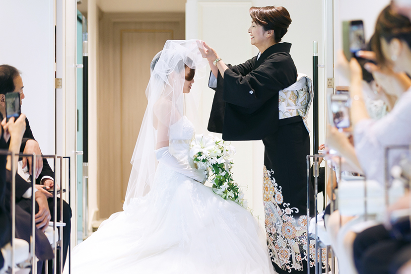 お母様への感謝を感じながらベールダウンのセレモニーを行う