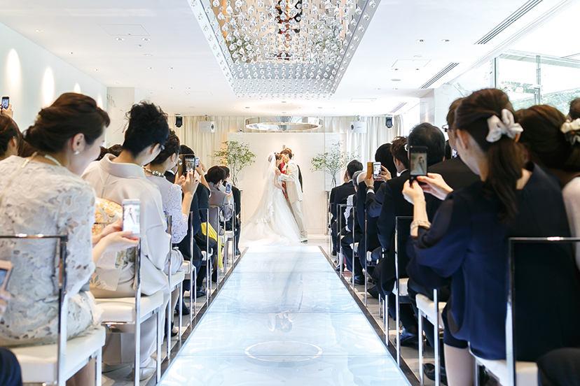 煌めくシャンデリアと優しい陽光に祝福されて夫婦の誓いを