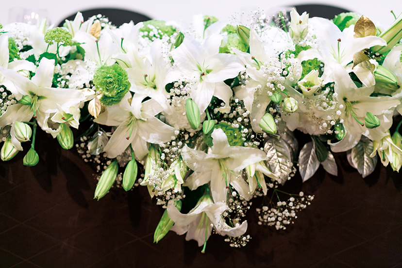 立体感のある装花が目を引き、洗練された大人の雰囲気