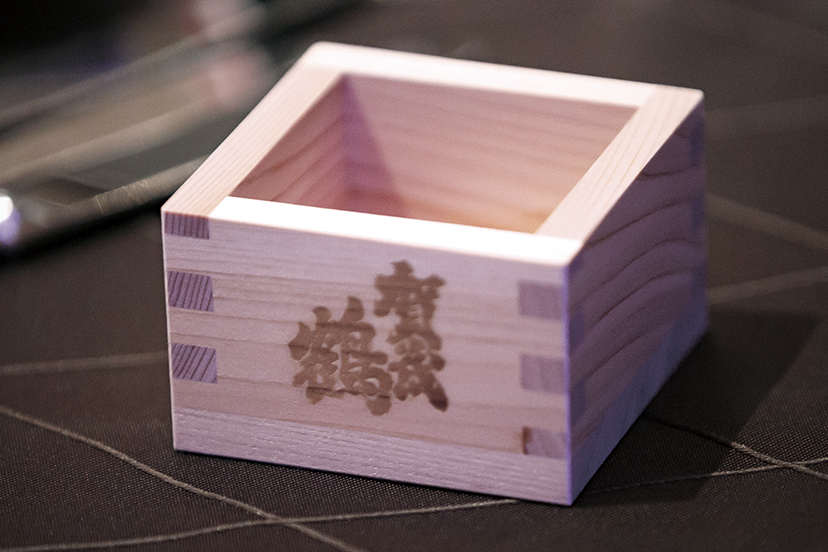 新郎の親族ゆかりの酒蔵から取り寄せた樽酒を、升で乾杯