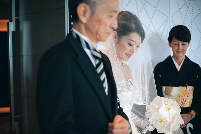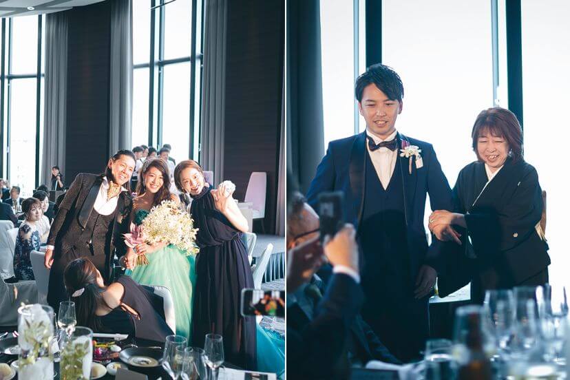 サプライズのエスコートに新婦は仲良しの兄と妹、新郎は母と
