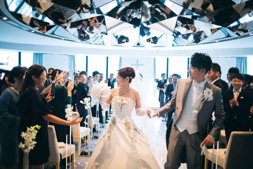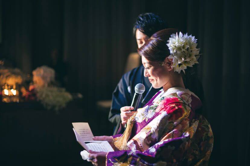 緊張のあまり右手を出してしまった新婦にゲストの顔がほころぶ
