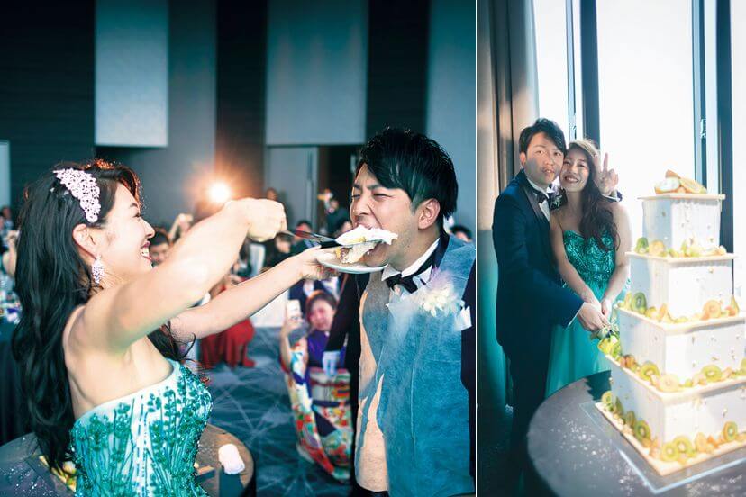 テーラーメイドのコンセプトと「妥協しないおふたりにこそ選ばれたい」と言うプランナーの人柄に惹かれてコンラッド大阪を選んだ。それぞれの地元の食材やふたりのエピソードをメニューやケーキに取り入れて、その日限りのオリジナルのおもてなしを準備。会場に足を踏み入れた瞬間から「誰一人退屈させない!」をテーマに、前撮りの傍ら披露宴用にムービーを撮ったり、BGMの選曲もこだわり、ゲストに喜んでもらえる演出やサプライズを散りばめて笑顔が絶えないウエディングを実現した。ふたりにとっても最高に楽しく感動の一日となった。