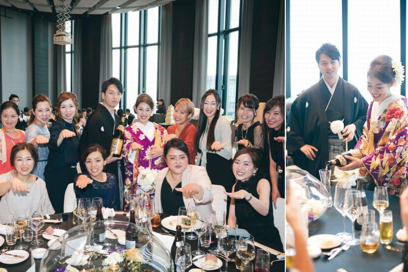 新郎地元、京都伏見の日本酒をテーブルラウンドで