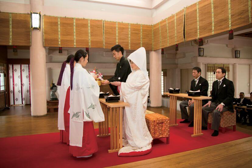 お供えしたお神酒で夫婦の契りを結ぶ「誓飲の儀」
