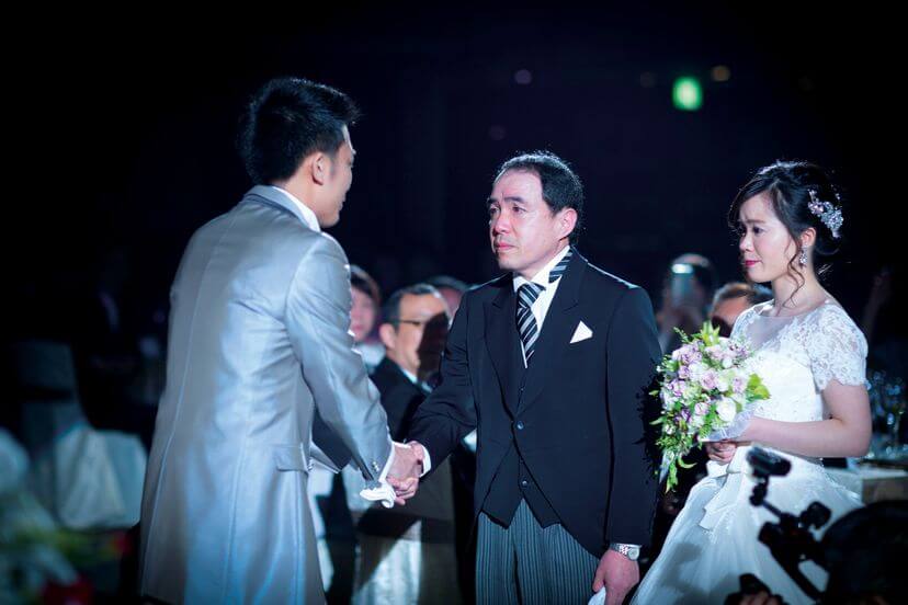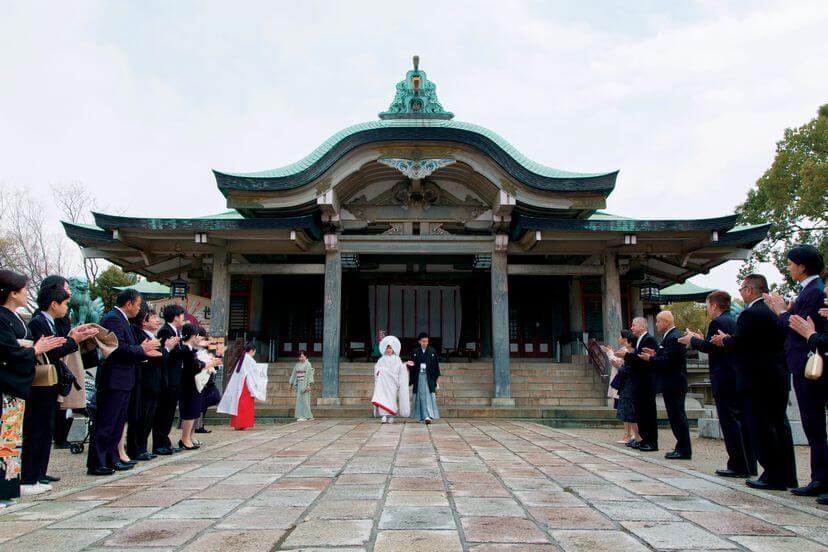 生粋のなにわ男であるHさん。「大阪に嫁ぐ!」というSさんの愛と気合いに満ちた想いを込めて、大阪城の雄姿を間近に見られる市内随一のロケーションが魅力の「ホテルニューオータニ大阪」を選んだ。挙式は大阪城公園内にある豊國神社本殿にて粛々と執り行われた。一方、披露宴は、和洋折衷の婚礼メニューや豪華装飾のほか、鏡開きやサンクスバイトなどゲスト巻き込み型の演出でゲストを楽しませた。また、新郎によるサプライズ演出や家族の絆が深まる演出を盛り込んで、笑いあり感動ありの充実した特別なひとときを過ごした。