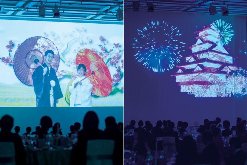 祝宴の幕開けは和をコンセプトにした大阪らしい豪華ムービーで