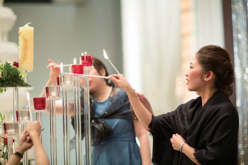 ふたりの中座中、キャンドル演出の準備に参加してもらい、ゲストを楽しませた