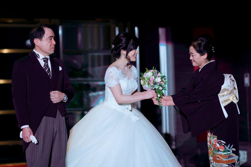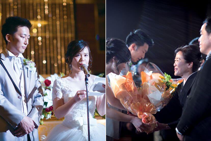 祝宴の締めくくりは両親へ感謝の手紙と花束の贈呈