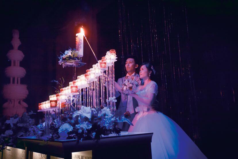 ゲストによって灯されたキャンドルタワー。ラストの点灯はふたりで