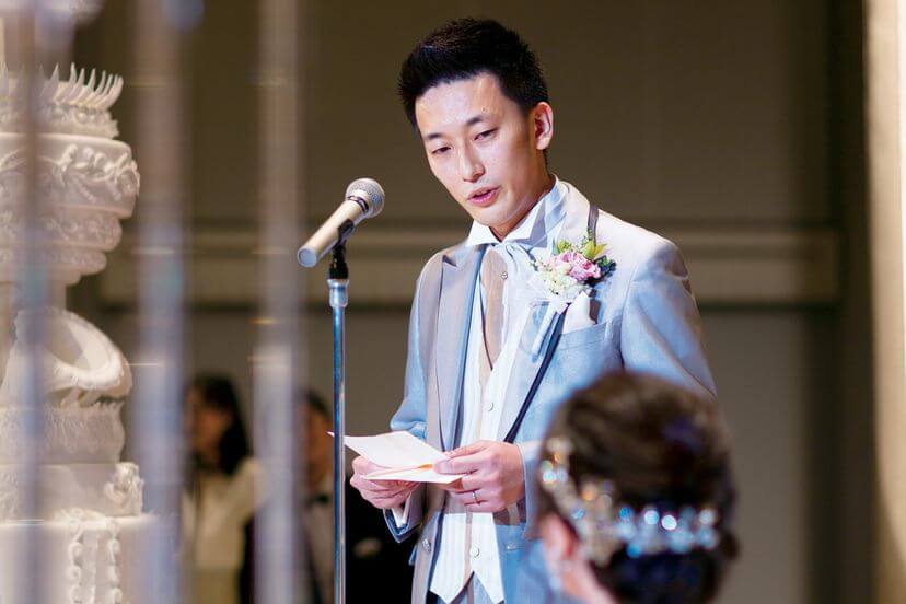 新郎から新婦へサプライズで手紙を朗読。バラの花束も贈られ、新婦を想う新郎の愛情深さが伝わった