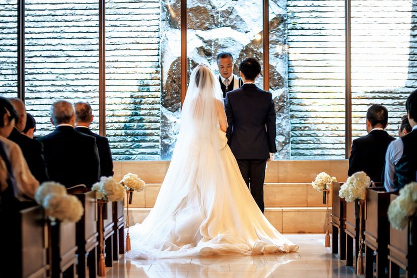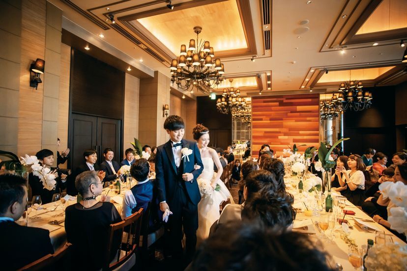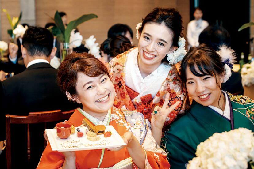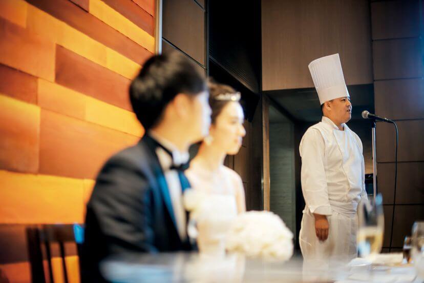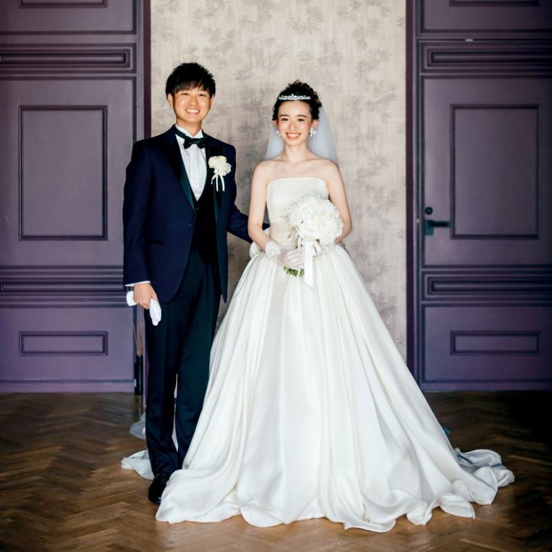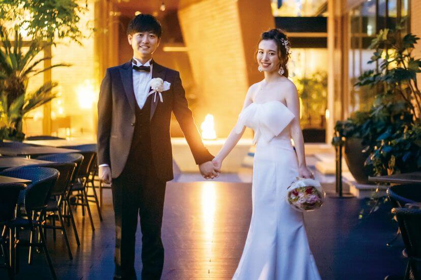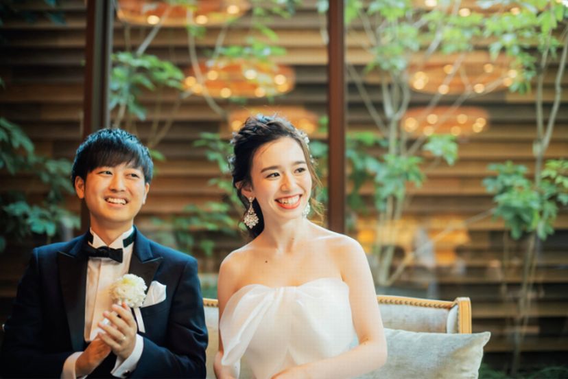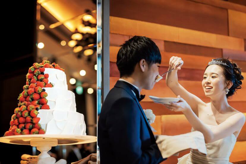 人生最高の「食事会」に大切なゲストを招待することが、ふたりのパーティのテーマ。ブライダルフェアで試食したフォアグラ寿司をゲストにも食べてほしいと思ったことがこのホテルを選ぶ決め手に。挙式は厳粛な雰囲気で、パーティはアットホームに、自らアイディアを出してゲストに喜ばれる結婚式をプランナーと創り上げていった。派手な演出をあえて控えめにしたことで、美味しい料理を寛ぎながらゆっくり楽しむ、語らい重視のおもてなしが叶った。いつもにこやかにいることが私たちらしさというふたり、笑顔が絶えない心温まる一日となった。