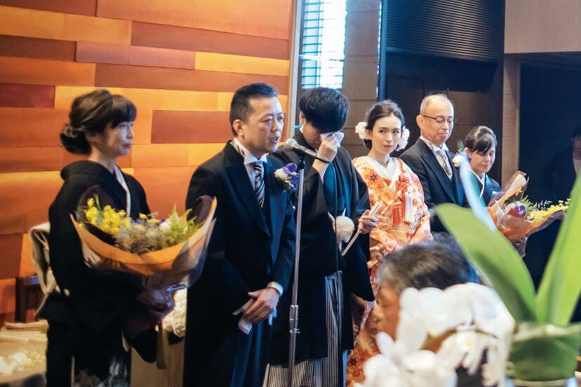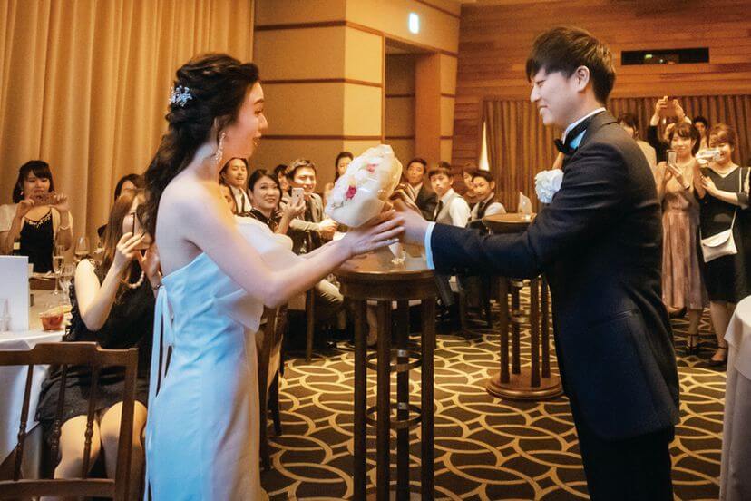 アフターパーティで新郎が手作りしていたプリザーブドフラワーのブーケをサプライズでプレゼント