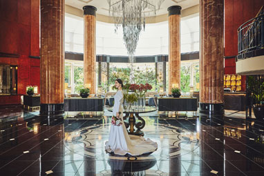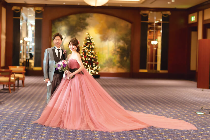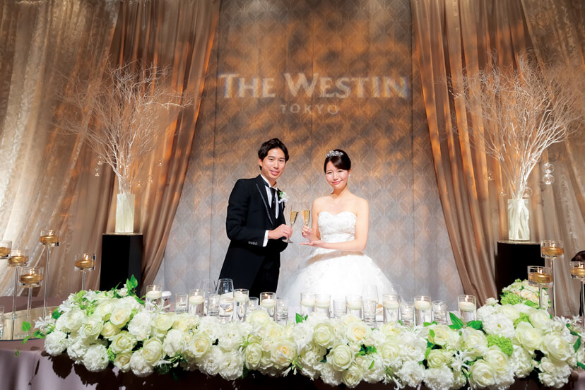 交際4年目の新婦の誕生日にプロポーズ、その約1年後に入籍・挙式を叶えたふたり。「ウェスティンホテル東京」は、料理やホスピタリティの評判が高く、クリスマスには恵比寿の街並みも楽しんでもらえる好立地。ふたりが望んだ「楽しく、記憶に残るゲストファーストなウエディング」に最適なホテルだった。挙式は天井の高い厳かなチャペルで、ゲストに見守られながらのセレモニー。式後は馬車でのセレモニーで恵比寿ガーデンプレイスをパレードする贅沢な時間を楽しんだ。披露宴では、清楚な白と温かみのあるゴールドを基調にした装花&キャンドルで大人の「ホワイトクリスマス」を演出。おもてなしの料理は、今でも「美味しかった!」と言われるほど大好評だった。自分たちの足でゲストテーブルに挨拶したいと、キャンドルサービスでラウンドしたほか、新婦は友人とダンス、新郎はサプライズ映像を流しながら歌を披露するなど、ゲストのボルテージは最高潮に。「もう一度、あの日の幸せを噛みしめたい」と新婦が語るほど、夢のような一日を実現することができた。