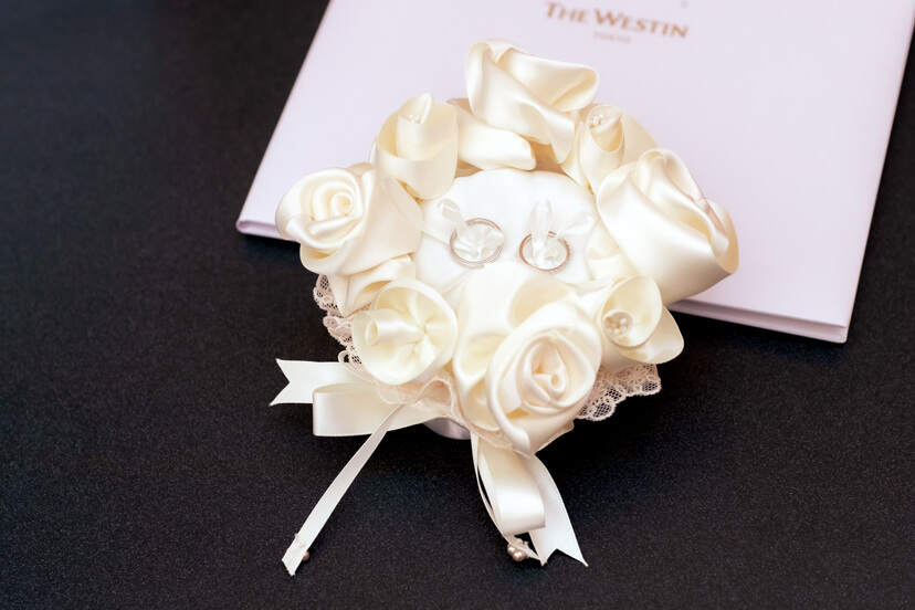 裁縫が得意な叔母に作ってもらったバラモチーフのリングピロー