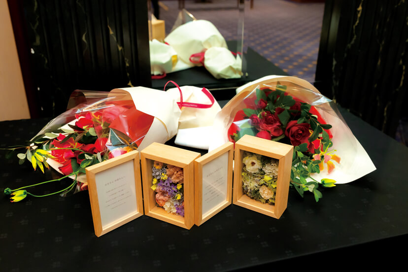 両親へは感謝の花束と、メッセージと生まれてからの日数を入れた「子育て感謝状」を贈呈