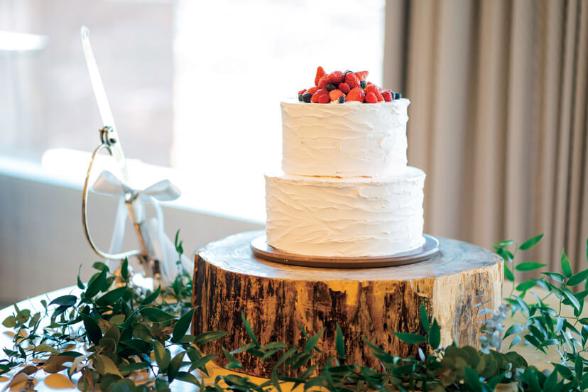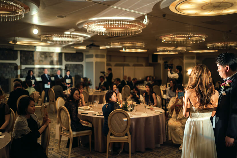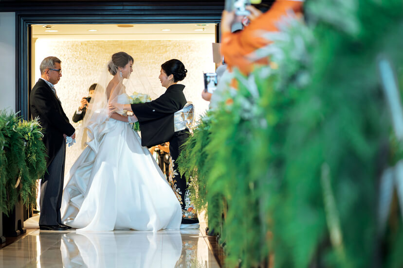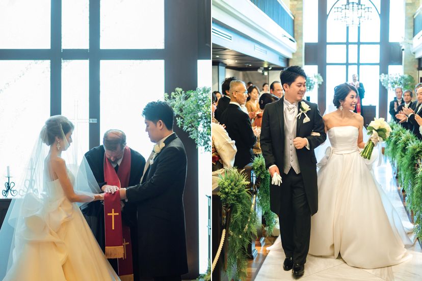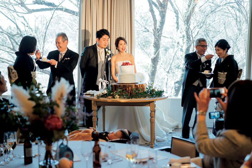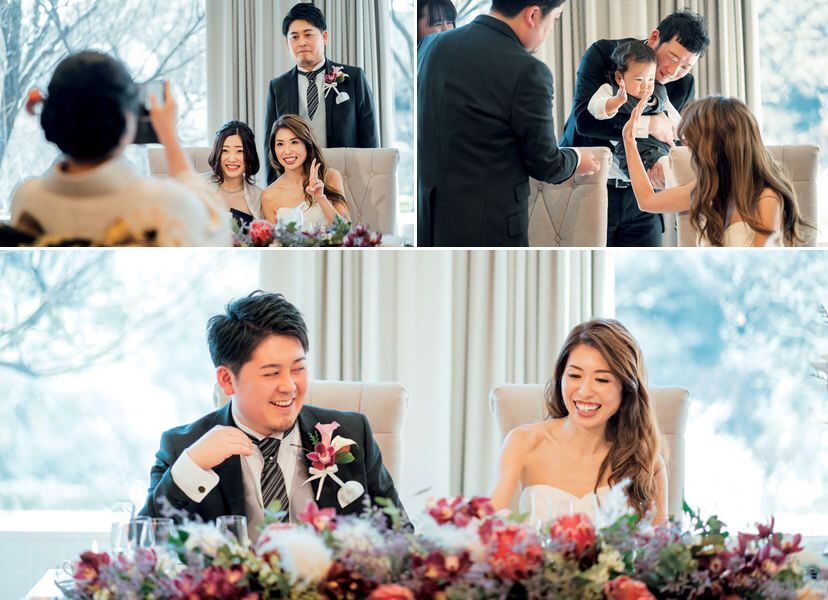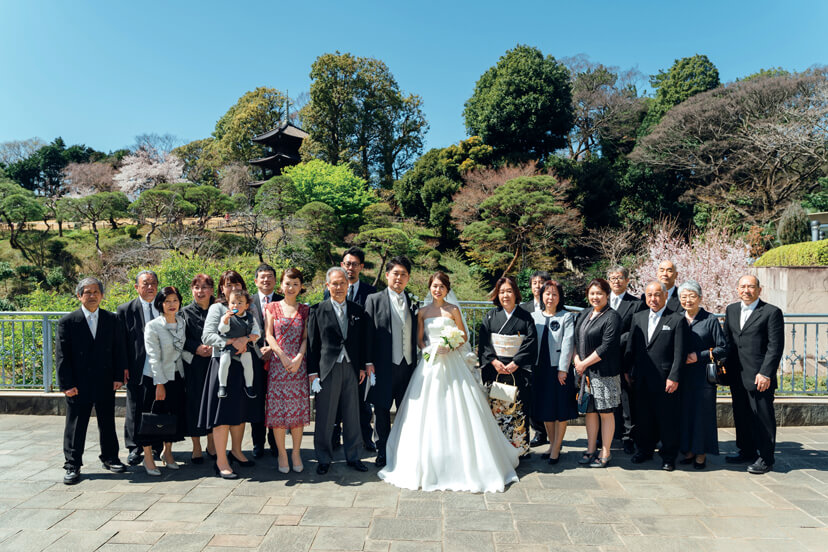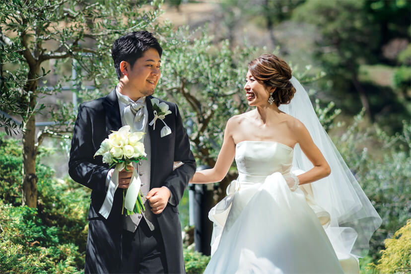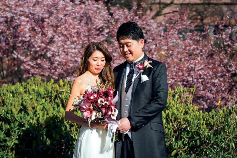 ふたりを祝福するかのように桜が開花した3月中旬、「ホテル椿山荘東京」で晴れの日を迎えた。20着以上試着して選んだドレスをまとって臨んだチャペルでのセレモニーの後は、庭園でフラワーシャワーや家族、知人との写真撮影を楽しんだ。披露宴は庭園を望むバンケットで。大人っぽさとナチュラル感を意識したコーディネートに。サプライズだった両家両親のお手本バイトでは、うれしさで照れる姿に会場中が温かな雰囲気に包まれた。新婦中座は、新婦妹と親友がエスコート。突然の指名に驚く親友からの飾らない言葉に涙するゲストもいた。何よりもこだわったのは料理。両家の家族も一緒に試食会に参加し、全員一致で決めた、ホテル名物料理「米茄子の鴫炊き(しぎたき)」はゲストから大絶賛だったそう。細部までこだわりに満ちた結婚式は思い描いていた以上の至福のひとときとなった。「結婚式を延期にするか悩みましたが、当日ゲストから『いい結婚式だった』と言われ、決行して本当に良かったです」と、幸せいっぱいに語ってくれた。