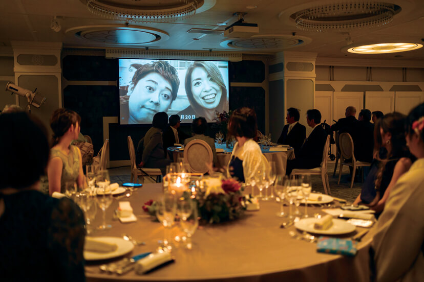 新郎友人作のプロフィールムービーからパーティは幕開け