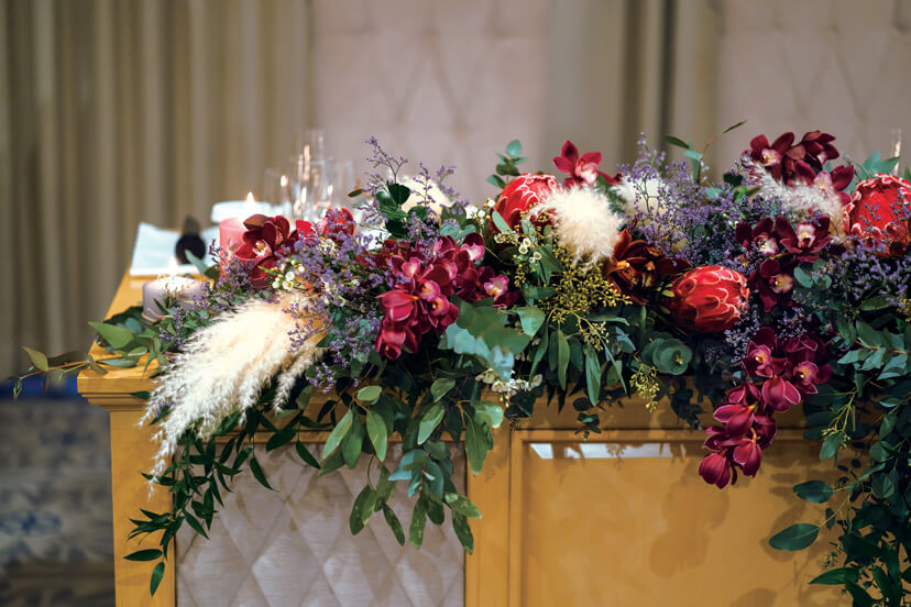 フラワーコーディネーターに何度も相談した装飾。イメージ以上の出来栄えに大満足