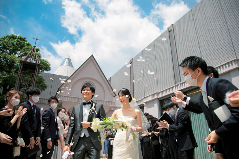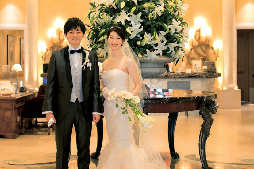7年の交際を経て、結婚に至ったというふたりの結婚式の舞台は『ホテル阪急インターナショナル』。披露宴会場は、新婦が大好きな宝塚歌劇団のディナーショーが開催されることもある、天井が高くシャンデリアが豪華な「紫苑」を選んだ。「華やかな雰囲気にしたかった」と語る新婦は、「ミラーボールをぶんぶん回す!」とあらかじめ友人たちに宣言。予告通りの演出に、ゲストは笑顔で楽しんだ。入場やケーキ入刀シーンなどミラーボールが回るたび、会場が盛り上がり、その様子を撮った動画が、続々と新婦に送られてきたという。久しぶりに会えた人たちとの会話や、記念撮影といったコミュニケーションが何よりもうれしかった結婚式。「自分たちが準備し思い描いた空間、そこに大好きな人たちと滞在できるという、最高に贅沢な時間でした」と振り返るふたり。将来後悔しないようにと、5月から延期した結婚式を8月に開催した。大切な人たちとの出会いやご縁に感謝することができ、結婚式準備を通じてさらにふたりの絆も深まった。