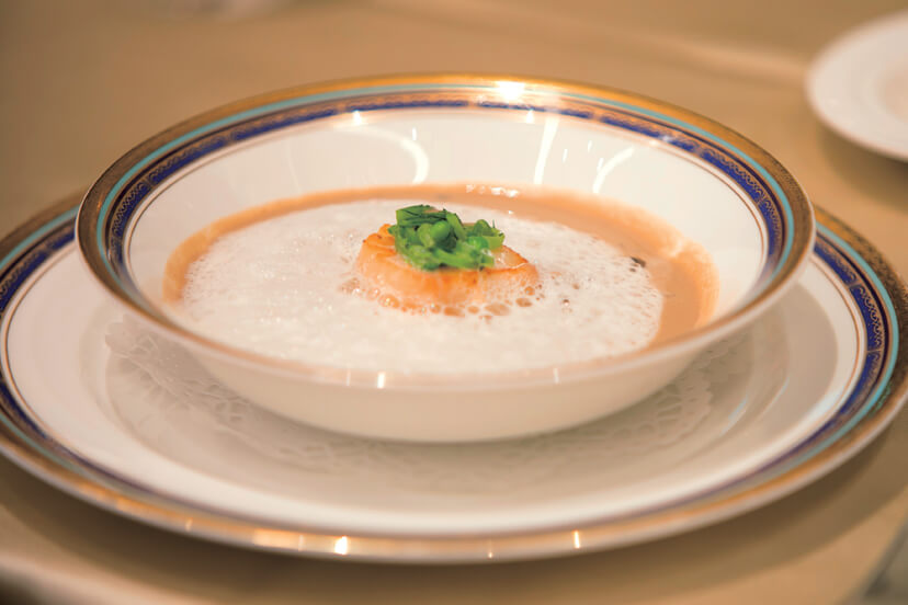 「結婚式参列経験が豊富なゲストが多かったので料理には特にこだわりました」というふたり。試食会で全体のバランスやボリューム、盛り付けやお酒との相性をしっかりと見極めコース選んだ。当日は料理が運ばれるたびに感嘆の声が上がっていた