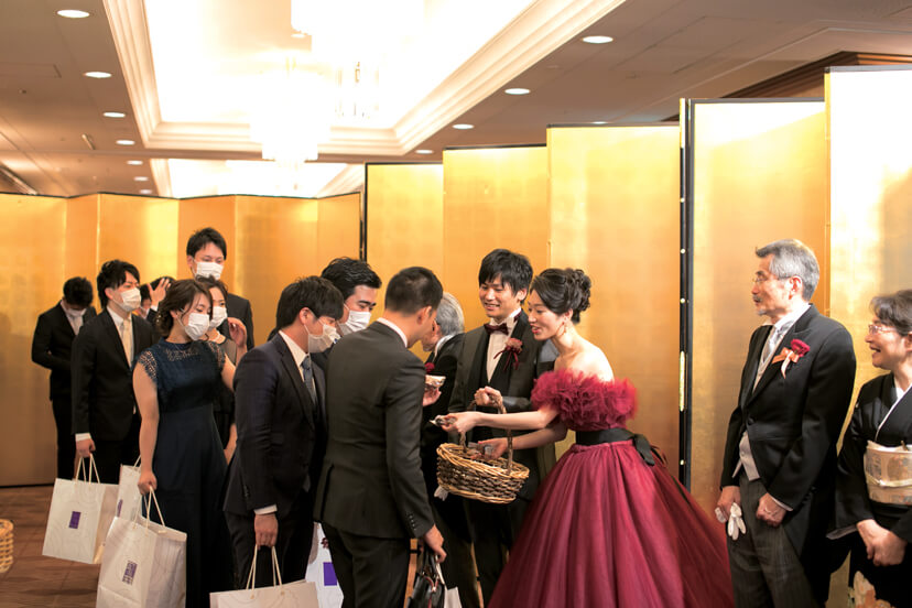 送賓時のプチギフトには有名洋菓子店のカヌレを選んだ。ゲストからも喜びの声が上がった