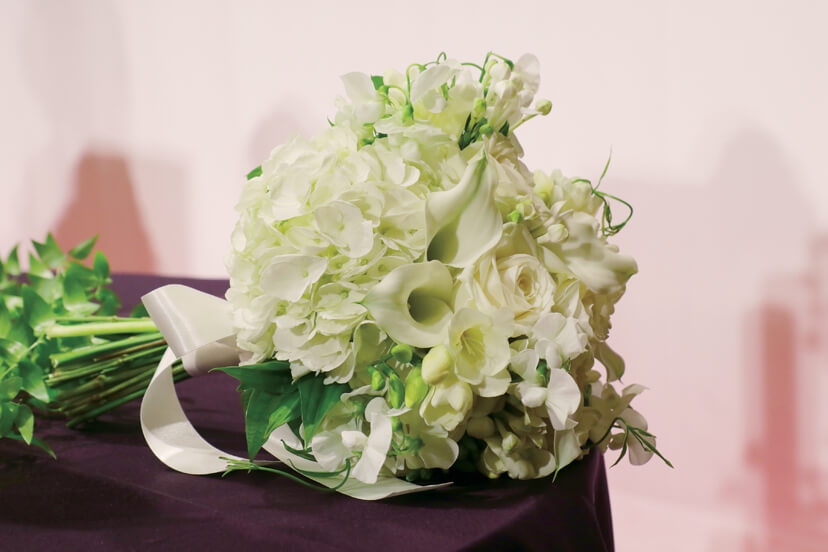 アジサイ、バラ、カラー、大好きな花を盛り込んで作ったブーケ
