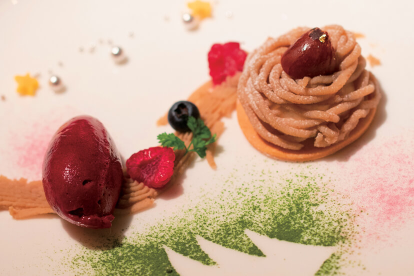 何度も試食を重ね納得のいくコースに。クリスマスらしさを取り入れた盛り付けもふたりのこだわり