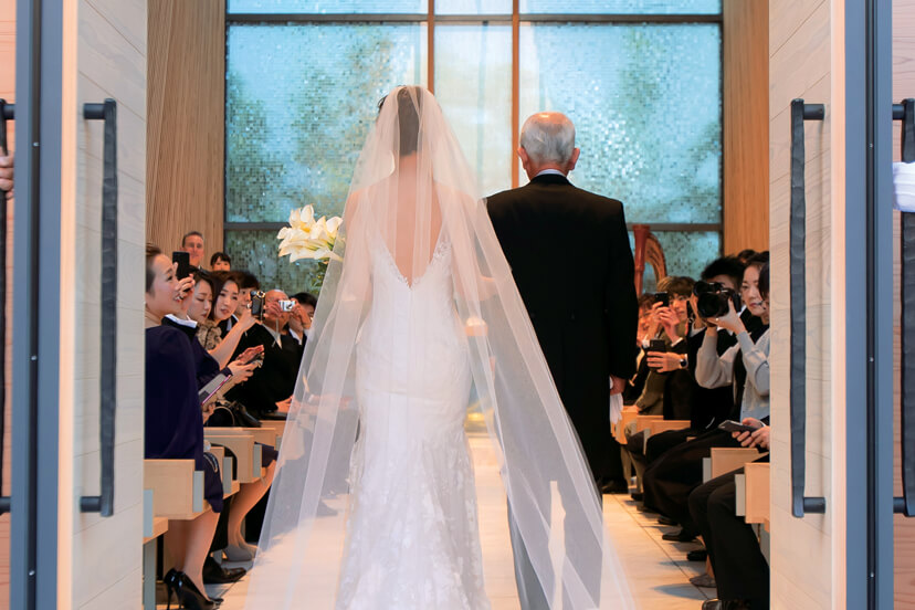 温かな祝福と和やか雰囲気に包まれてお父様と入場