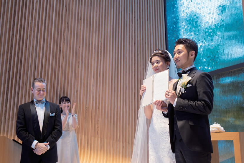 大切なゲストに見守られ晴れて夫婦となったふたり