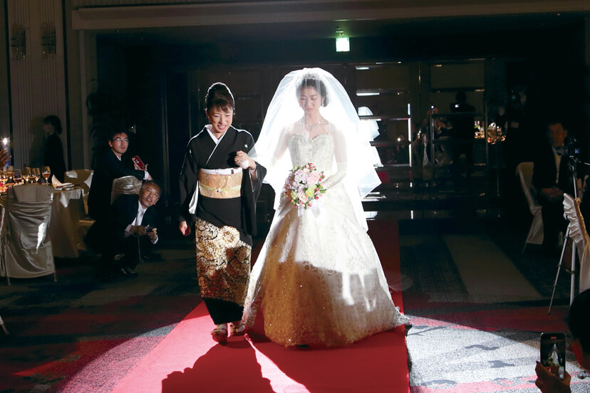 バージンロードを母と進み、新郎にバトンタッチするシーンでは涙ぐむゲストも