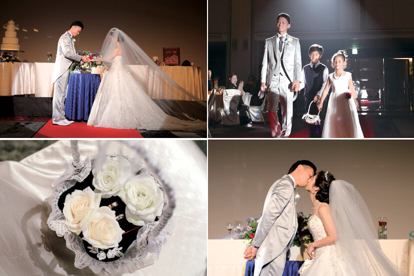 新郎の姪と甥がリングガール&ボーイを務めた指輪交換と誓いのキスに会場の盛り上がりもピークに