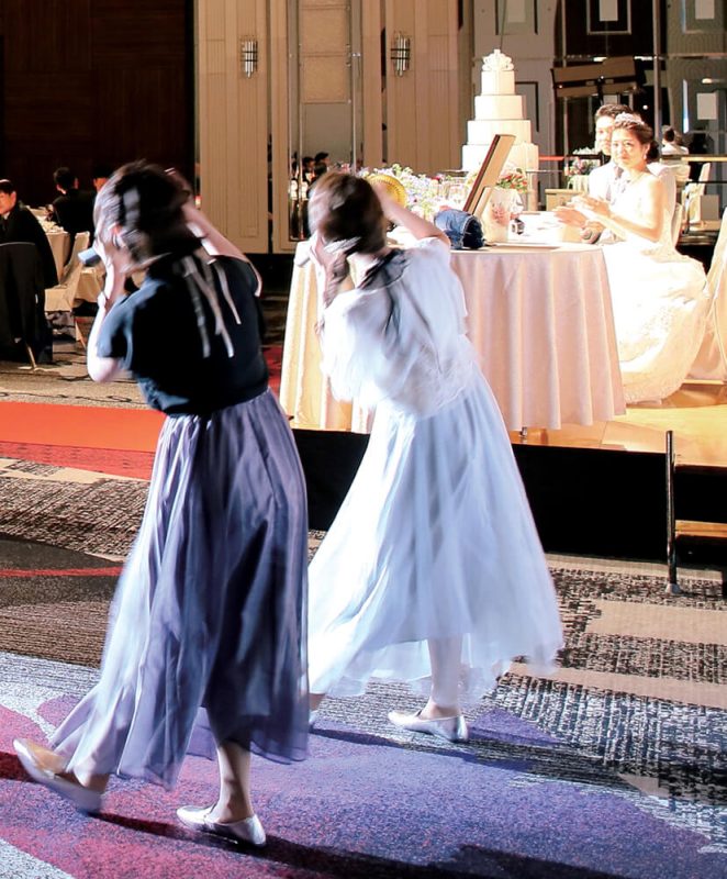 新婦の親友の双子アイドルがこの日のために作ってくれたオリジナルのウエディングソングを披露