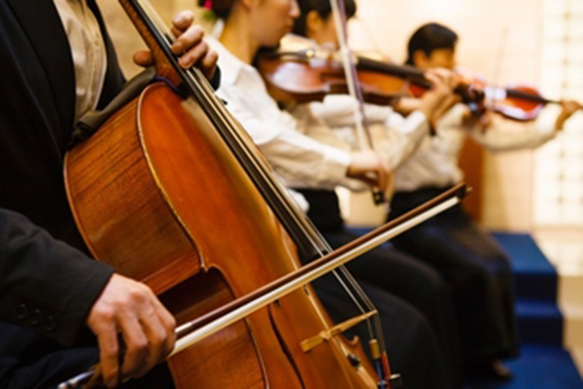 挙式を彩るのは、ホテル名の由来である「ストリングス(=弦)」にちなんだ、弦楽四重奏による生演奏。その美しいハーモニーが響き渡るチャペル内は凛とした空気に満ち溢れる。天窓から降り注ぐ光と清らかな音楽に祝福された感動的なウエディングが叶う。