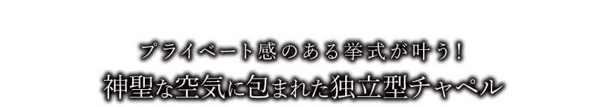 静寂に包まれた緑深い庭園に佇む「森のチャペル」。自然の中に突如現れるスタイリッシュな建物に目を奪われるゲストも多い。聖壇の奥は一面ガラス張りになっているので、まるで高原のリゾートにいるかのような、清々しい景色を見ることができる。また、透明感のある清楚なチャペル内はバージンロードに多くの光が集まるように工夫されており、ピュアホワイトを基調にした内装と相まってドレス姿の花嫁を美しく際立たせてくれるのがうれしい。