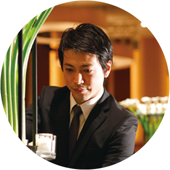 トレンドとモダンかつエレガントな要素を重要視し、常にコンテンポラリーでありながら独自性を取り入れたデザインに定評がある。バンケットのどの位置からみても美しく見えるように、角度、ボリュームすべてが計算されたクオリティの高さは見事。おすすめは、季節感ある花材を生かしたコーディネート。毎年その季節にその花を見たときに、ふたりの結婚式を思い出す。それがウエディングの装花の魅力でもあると語る。