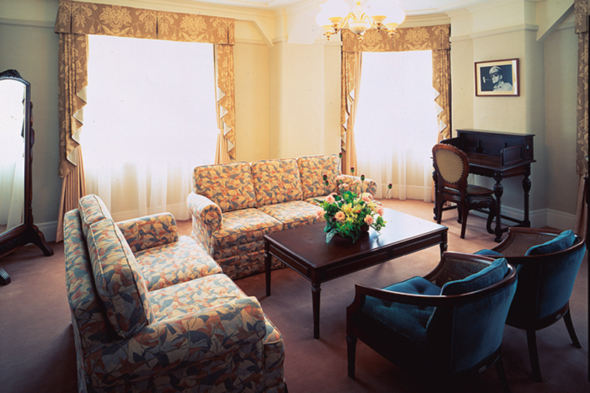 マッカーサーとの関わりが有名だが、占領軍指揮官として宿泊した時は実は三度目の宿泊だった。彼が初めてこのホテルを利用したのは少年時代の観光旅行。二度目は新婚旅行での利用。この写真は彼が3度目に宿泊した「勝利の間」。現在はリニューアルされ「マッカーサーズスイート」と呼ばれ一般にも利用することが出来る。