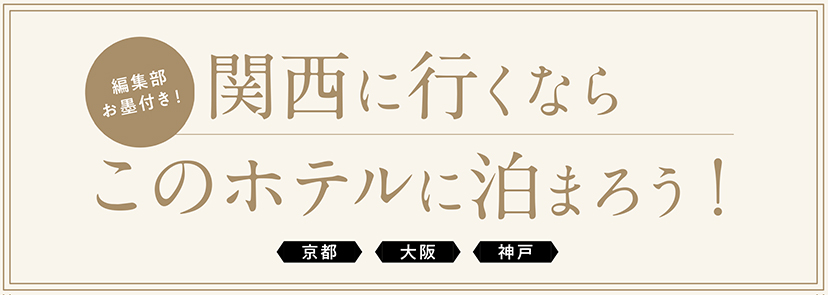 京都の歴史に触れ、大阪の食を堪能し、神戸の夜景に酔いしれる。関西に行くなら、ぜひ泊まって欲しい編集部厳選9ホテルを紹介。最高の空間、心温まるサービス、快適な客室、グルメ、癒し、体験など関西の旅行がワンランクアップするホテルの魅力を思い切り楽しもう。