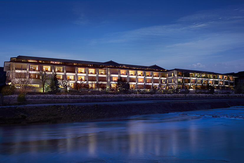 風光明媚な景色を望む、静寂に包まれた最上級のホテル。古都の美とモダンが融合した優美な空間に、思わず溜息がもれる。町屋の情緒を感じるラウンジでピエール・エルメ・パリのデザートを味わった後は、源氏物語をイメージした約400点もの美術品を鑑賞するツアーがおすすめ。ミシュランが認めた料理や癒しのスパなど、ここに泊まるためだけに京都に訪れる価値がある。