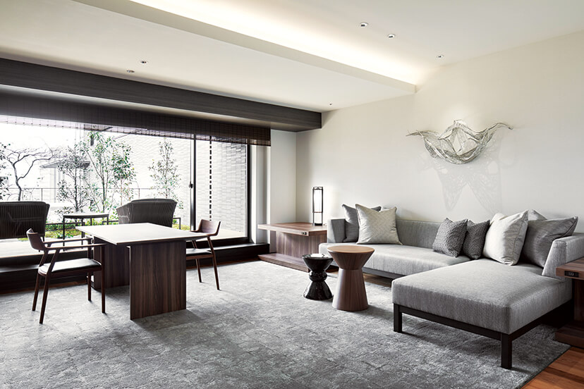 ホテルの扉を開けると、笑顔のスタッフと芳醇な香りに迎えられる。枯山水の日本庭園、美術品が飾られたロビーは、高い天井と大きな窓から差し込む陽光が心地よい。このホテルの宿泊の醍醐味は、24時間対応のバトラーサービス。一人ひとりの滞在スタイルに寄り添ったパーソナルなサービスを提供。非日常だけど邸宅にいるような感覚を味わえる、至福なステイを堪能して。