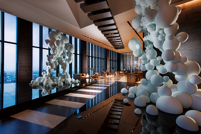 エレベーターで降りた瞬間に広がる地上200mからの眺望は圧巻。海外の美術館のようなロビーを通り抜け、ライブミュージックが心地よいラウンジで自慢のアフタヌーンティーを堪能。夕景を眺めながらのスパの後は、パノラマの夜景とインスピレーション溢れる料理に舌鼓。カクテルを味わえるバーやモーニングヨガなど、ここでしか体感できない感動ステイがある。