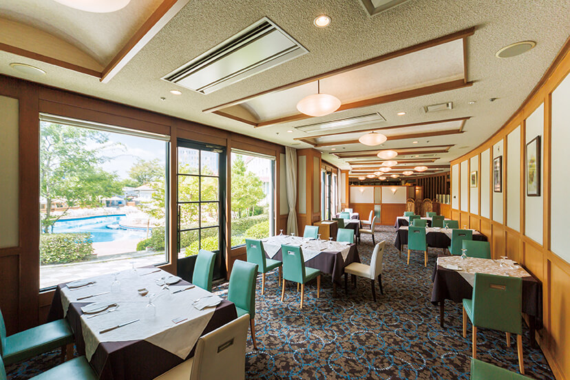 緑豊かな北摂の地に1970年開業した邸宅風ホテル。当時のまま残っている主階段やインテリアなどすべてがレトロシックで、どこか懐かしくほっと心がゆるむ。野鳥のさえずる空間に心癒され、リゾート地に訪れたよう。季節の花々が咲く中庭を望むラウンジで過ごす時間は格別。長年培われてきたホスピタリティとスタッフの優しさに包まれた特別な滞在を叶えて。