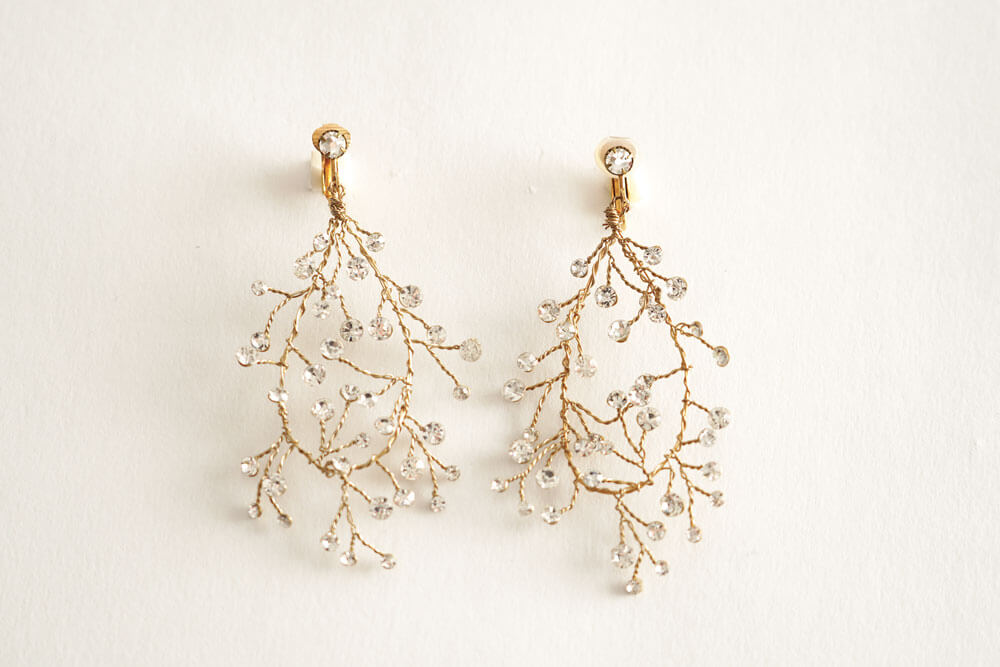 ランダムに広がる小枝のようなデザインが、華奢でありながら存在感もあるイヤリング。歩くたびに揺れる可憐さが魅力。