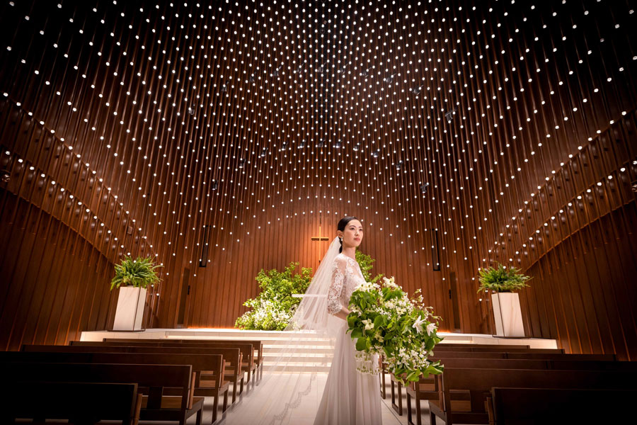 オーバル状チャペルで本格的な挙式。