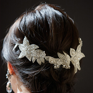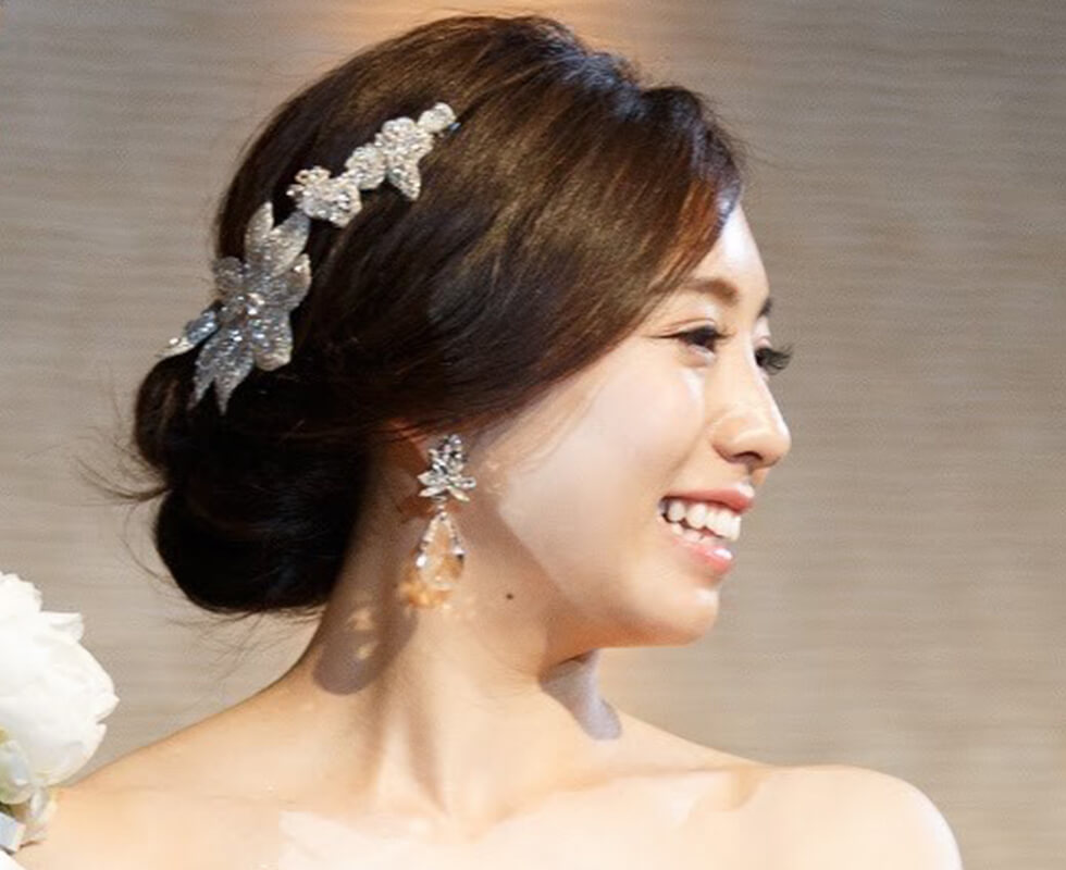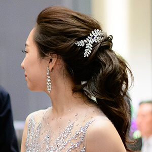 エアリー&ゴージャスなヘアスタイルで、ドレスやアクセサリーの煌くビジューとのバランスを意識。