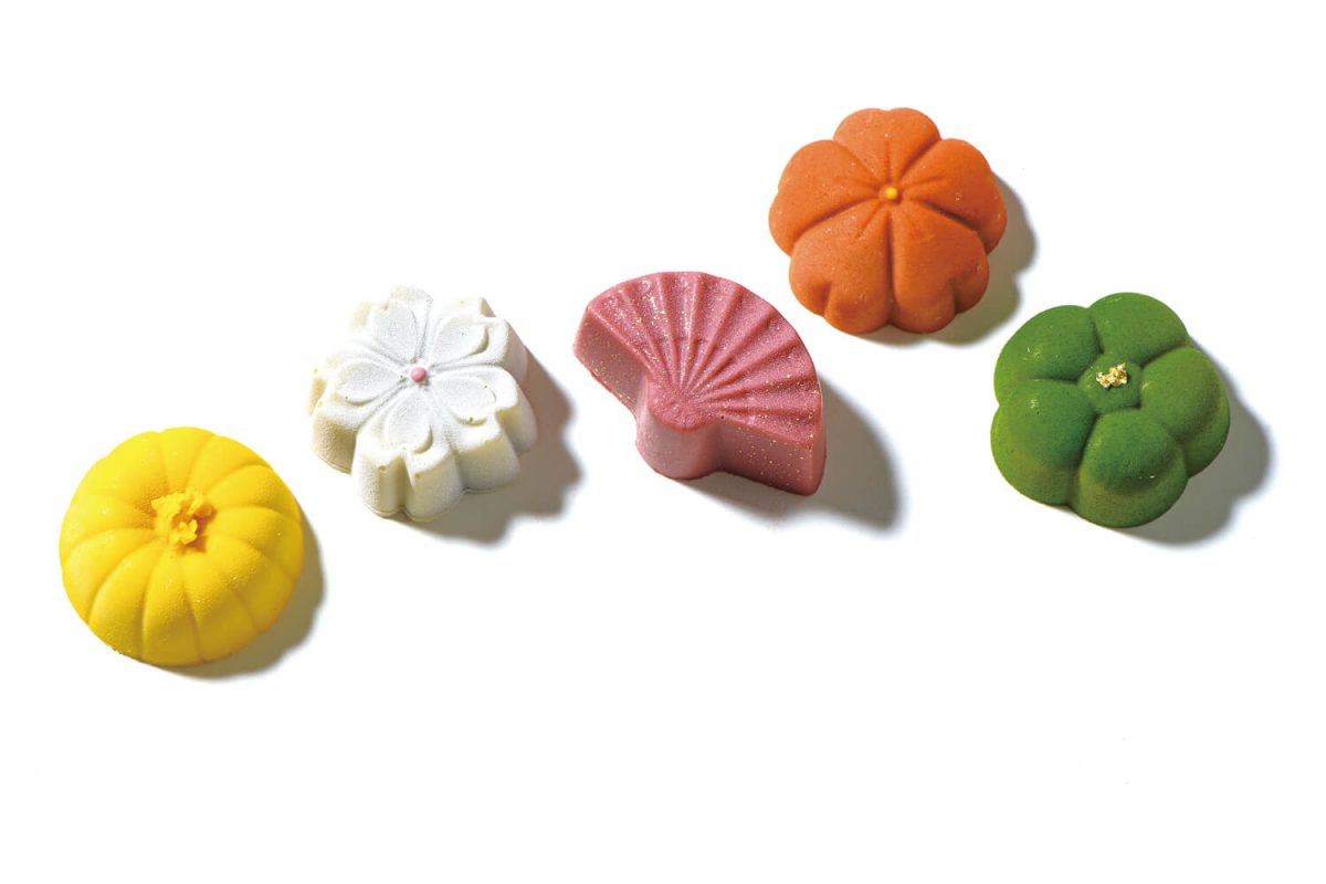 まるで和菓子のような見た目の鮮やかなボンボンショコラ。紫蘇や蜜柑&ヨーグルト、日本酒&黒豆、あんず&プラリネ、抹茶&ごまと、味にも和テイストを盛り込んでいる。