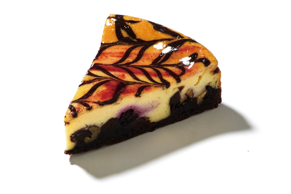 ニューヨークでも人気のチーズケーキとブラウニーを合体させた遊び心あるケーキ。カシスのフレッシュさとクルミの食感が加わり、濃厚でいてさっぱりとしたユニークな味わい。