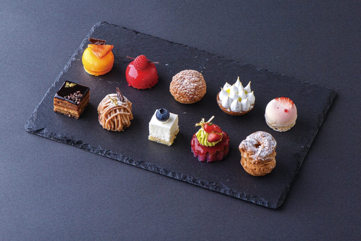 定番人気から旬の食材を使用したケーキまで、季節ごとのおすすめ10種類をプティサイズに。程よい酸味と爽やかな香りのレモンタルトなど、丁寧に施されたデコレーションが美しい。