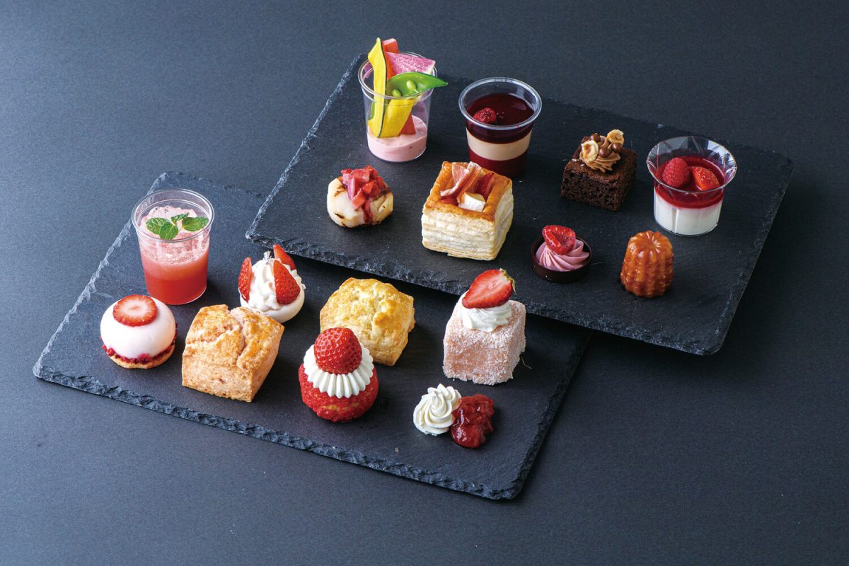伊仏のエスプリ薫るセイボリーとスコーン、季節のスイーツが揃うアフタヌーンティー。春は甘酸っぱいイチゴタルトなど全15種。イチゴの美味しさをあらゆる味わいで堪能して。